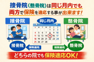 接骨院(整骨院)は同じ月内でも両方で保険を適応する事が出来ます。